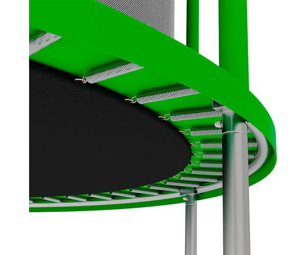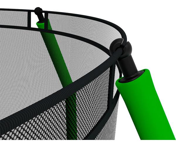 • Тип крепления защитной сетки [снизу]: Max Protect (Максимальная защита от попадания конечностей в пружины батута. Защитная сетка крепится к батуту с помощью отверстий в нижней части сетки под каждое треугольное кольцо в прыжковом полотне)